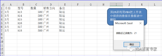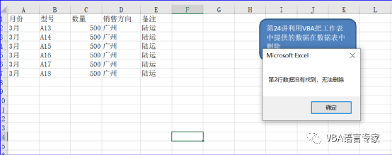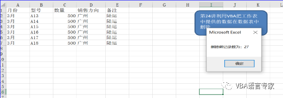 2 把工作表中提供的数据在数据表中删除的代码及代码解读