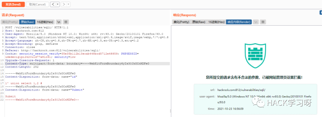 果然被拦截了,说明WAF的规则是覆盖到multipart/form-data协议的