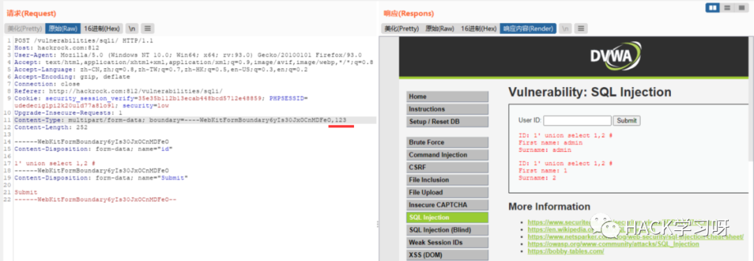 PHP在解析multipart data的时候有自己的特性,对于boundary的识别,只取了逗号前面的内容,例如我们设置的boundary为——aaaa,123456,php解析的时候只识别了——aaaa,后面的内容均没有识别。然而WAF在做解析的时候,有可能获取的是整个字符串,此时可能就会出现绕过。