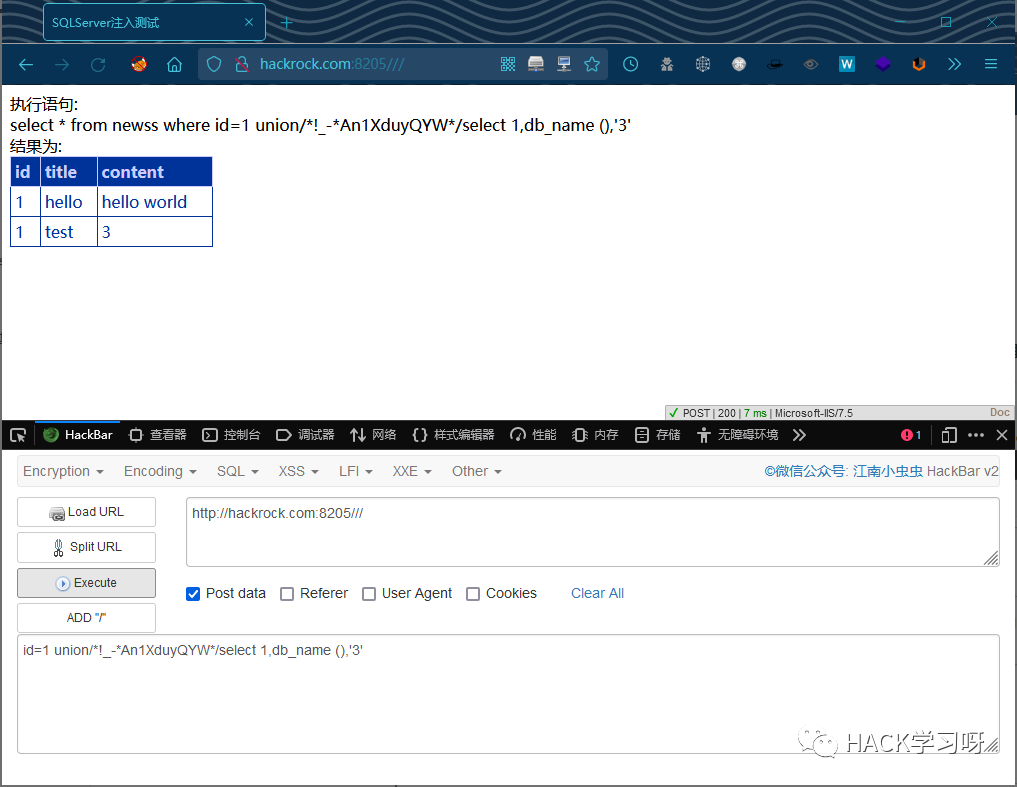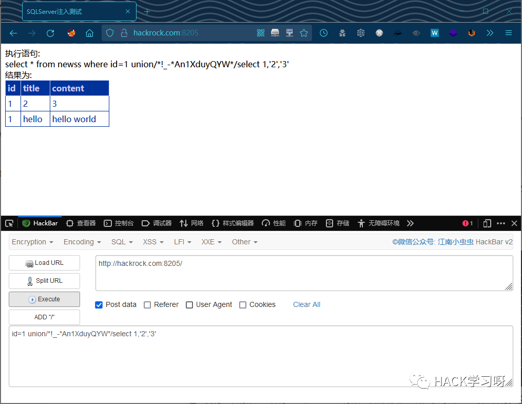 在请求体中构造我们的payload,可以绕过云锁WAF实现SQL注入