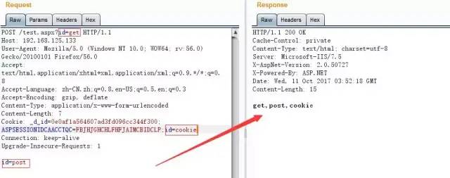 在ASPX中,有一个比较特殊的HPP特性,当GET/POST/COOKIE同时提交的参数id,服务端接收参数id的顺序GET,POST,COOKIE,中间通过逗号链接,于是就有了这个idea。