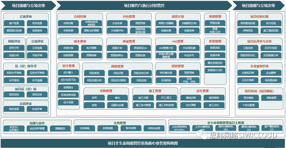 完整的项目全生命周期管控系统核心业务架构,助力大型复杂项目高绩效管理。