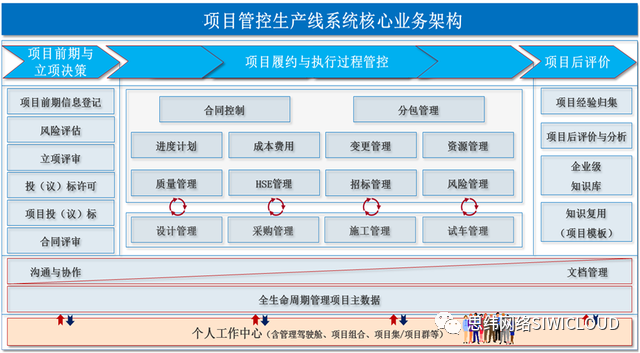 根据工程公司的需求,结合ORACLE多年项目管理实践实战经验,在国内外工程全生命周期项目管理业务中,本系统的核心能力架构包括: