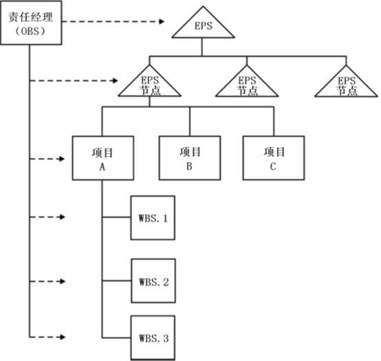 以下示例用于说明OBS、EPS、WBS结构在EPS一个分支中的相互联系。
