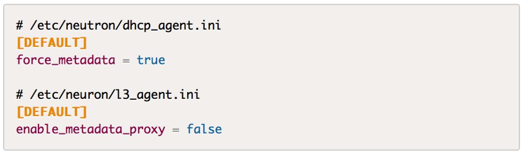 前面提到虚拟机访问Nova的Metadata服务需要Neutron转发,可以通过l3-agent转发,也可以通过dhcp-agent转发,如何选择需要根据实际情况: