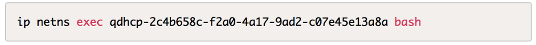 前面介绍了虚拟机访问Metadata服务地址169.254.169.254,然后转发到DHCP地址。我们知道Neutron的DHCP port被放到了namespace中,我们不妨进入到虚拟机所在网络的namespace: