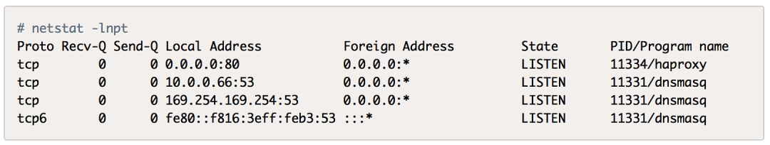 从输出中看,所在的环境除了开启了DHCP服务(53端口),确实监听了80端口,进程pid为11334/haproxy。
