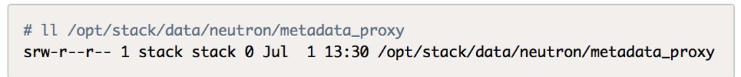 我们发现haproxy绑定的端口为80,后端地址为一个文件/opt/stack/data/neutron/metadata_proxy。后端不是一个IP/TCP地址,那必然是一个UNIX Socket文件: