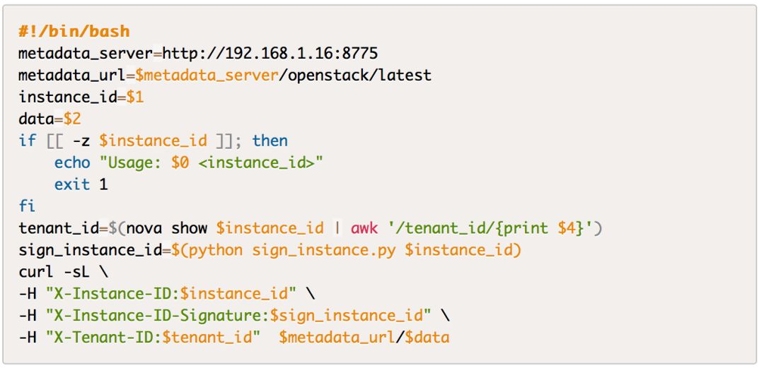 其中metadata_server为Nova Metadata服务地址。用法如下: