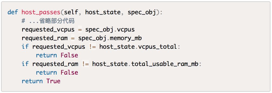 因此我们自主研发实现了一个精确资源匹配的filter,该filter会精确匹配hypervisor的资源与用户申请选择的flavor资源,过滤掉资源不符合的hypervisor节点,核心代码如下:
