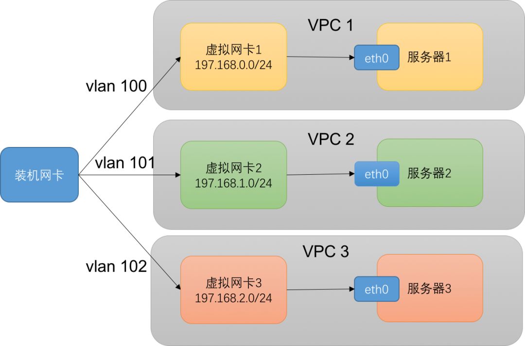 物理服务器部署网络和业务网络可共享复用,当添加一个新网络区域服务器时,只需要创建一个新的VPC并指定新的VLAN号即可,无需任何的物理交换机配置修改。