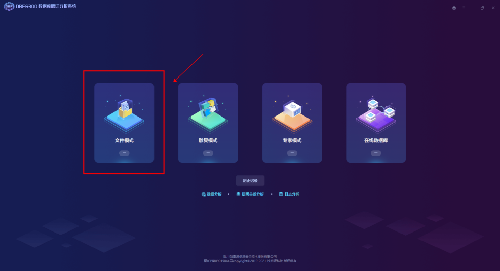 ②打开DBF6300数据库取证分析系统选择文件模式加载data目录文件夹;