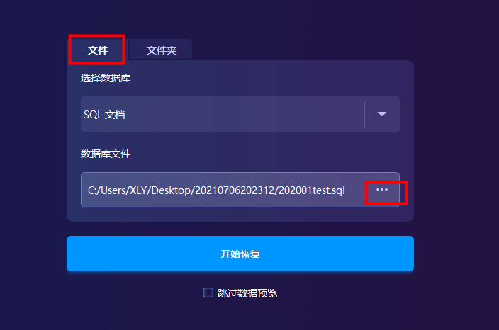 1、如果是备份的SQL文件,添加文件时需在文件模式下选择文件;