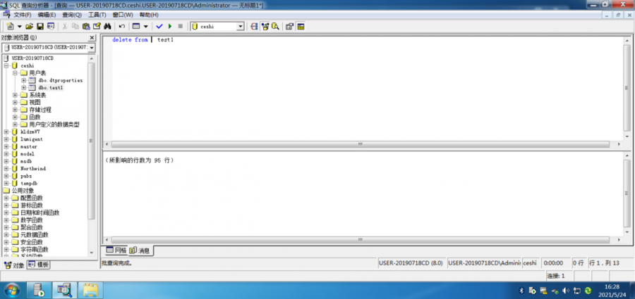我们来测试一下SQL2000环境下,三种不同的删除方式,数据库记录能否恢复。原始记录如下,一共有95条记录: