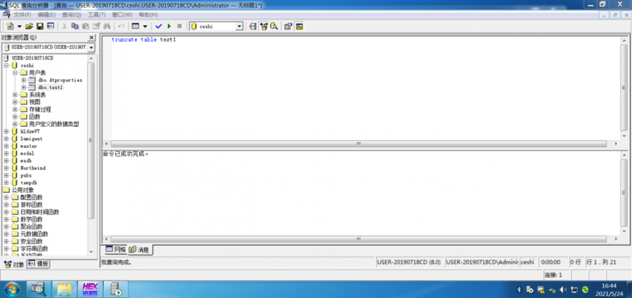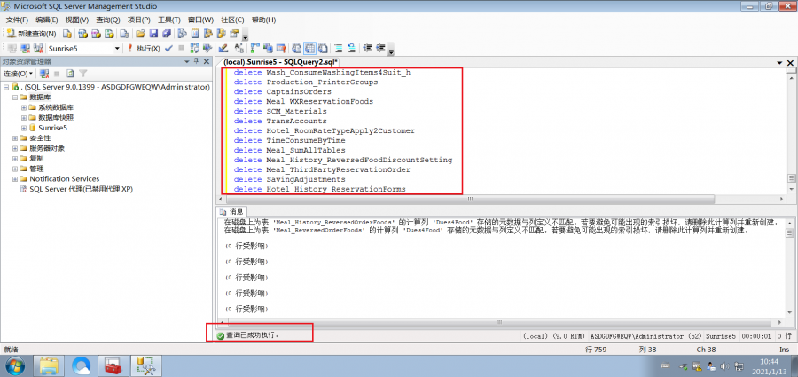 (2)将查询结果复制到查询分析器执行,清空数据库记录。