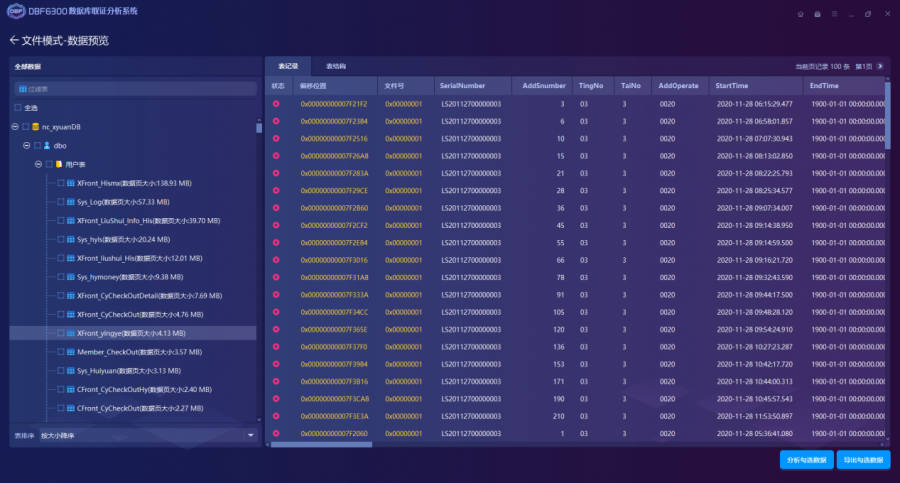 3. 使用针对数据库记录恢复的专业软件—DBF6300数据库取证分析系统。