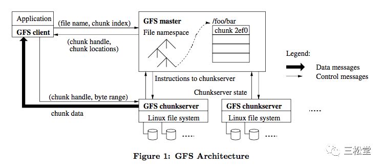 GFS的主要组件构成,以及读写数据流,看下图应该就基本清楚: