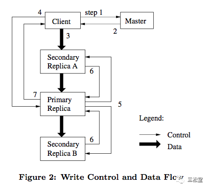 这个问题有几种解法。PAXOS支持随便写哪个都行,但是同步起来非常麻烦,协议复杂(后面我们可以单独开文章介绍);而且并发写时,不同replica可能被写了不同的数据(也即写冲突),此时的同步更加复杂,理解起来都这么复杂,实现起来必然bug百出啊。所以更多的系统比如GFS,简化了这个过程:先选一个replica作为老大(primary replica),然后往这个老大写,再由老大同步给其他小弟(backup replica)。
