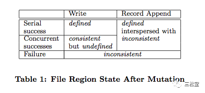3)write失败了,包括单并发还是多并发。显然失败了,多个副本之间可能一部分写成功了,另一部分写失败了,自然也就in-consistent、undefined了。