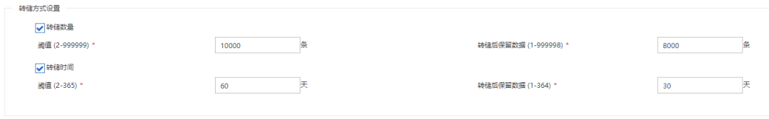 转储方式目前支持以下两种方式,若同时勾选,则满足任何一种都会触发转储。