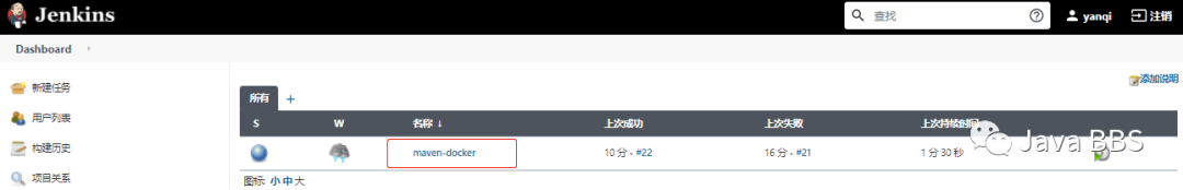 Dashboard——>新建Item——>任务名称:maven-docker:构建一个maven项目——>