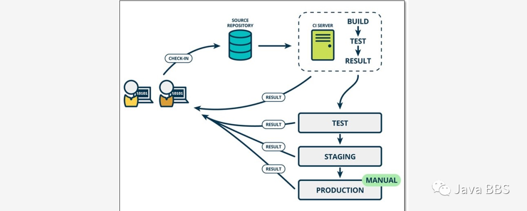 持续交付在持续集成的基础上,将集成后的代码部署到更贴近真实运行环境的「类生产环境」(production-like environments)中。比如,我们完成单元测试后,可以把代码部署到连接数据库的Staging 环境中更多的测试。如果代码没有问题,可以继续手动部署到生产环境中。