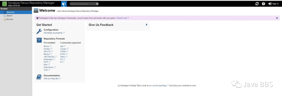 #点击右上角的sign in登录,输入账户**admin**#密码:[root@server11 ~]# cat /usr/local/sonatype-work/nexus3/admin.passworddd076ecd-3422-4b6b-bac1-fdd719dc22e4#Next提示更改密码#Next——>设置新的密码——>匿名账号访问——>finish