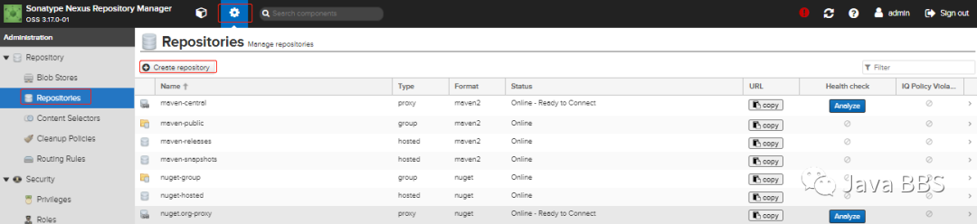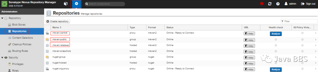 点击“设置-Repositories”,就可以看到仓库,分三种类型: