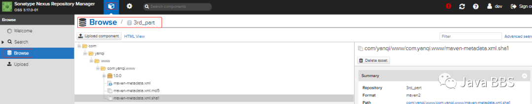 Group:是仓库组,在maven里没有这个概念,是nexus特有的。目的是将上述多个仓库聚合,对用户暴露统一的地址,这样用户就不需要在pom中配置多个地址,只要统一配置group的地址就可以了右边那个Repository Path可以点击进去,看到仓库中artifact列表。不过要注意浏览器缓存,当你的项目希望在多个repository使用资源时就不需要多次引用了,只需要引用一个group即可