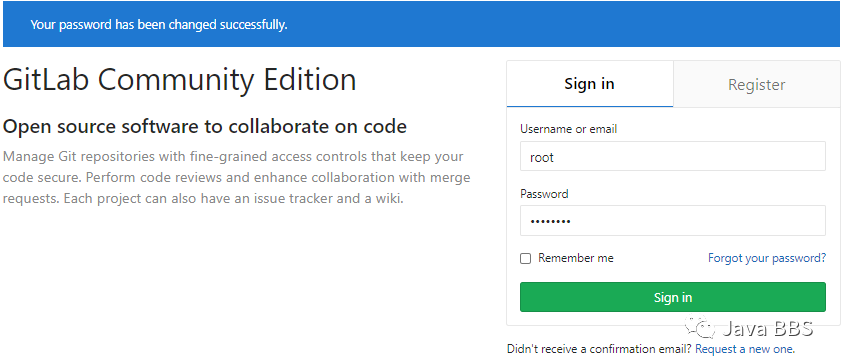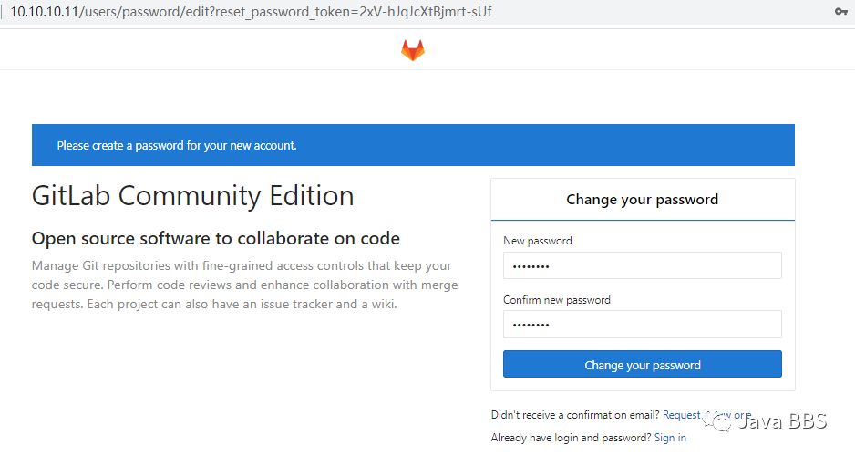 gitlab服务器的地址:http://10.10.10.11 GITLAB占用80端口,访问时直接访问IP就可以(第一次会让你确认root账户登录的密码)