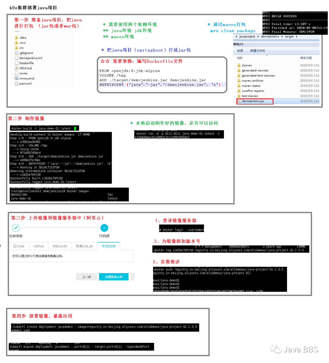 #打包镜像是需要用到[root@server14 ~]# DockerfileFROM openjdk:8-jdk-alpine #jdk环境,把jdk环境导入进去VOLUME /tmp #临时存储的目录ADD ./target/demojenkins.jar demojenkins.jar #做镜像的过程 #一般改写改jar包名称和路径ENTRYPOINT ["java","-jar","/demojenkins.jar", "&"] #jar包需要启用,java -jar启用