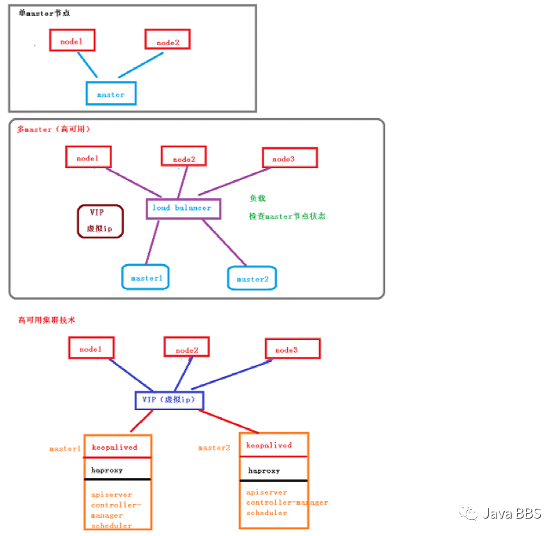#master1节点配置cat > /etc/keepalived/keepalived.conf <<EOF! Configuration File for keepalivedglobal_defs {router_id k8s}vrrp_script check_haproxy {script "killall -0 haproxy"interval 3weight -2fall 10rise 2}vrrp_instance VI_1 {state MASTERinterface ens33virtual_router_id 51priority 250advert_int 1authentication {auth_type PASSauth_pass ceb1b3ec013d66163d6ab}virtual_ipaddress {192.168.44.158}track_script {check_haproxy}}EOF#master2节点配置cat > /etc/keepalived/keepalived.conf <<EOF! Configuration File for keepalivedglobal_defs {router_id k8s}vrrp_script check_haproxy {script "killall -0 haproxy"interval 3weight -2fall 10rise 2}vrrp_instance VI_1 {state BACKUPinterface ens33virtual_router_id 51priority 200advert_int 1authentication {auth_type PASSauth_pass ceb1b3ec013d66163d6ab}virtual_ipaddress {192.168.44.158}track_script {check_haproxy}}EOF
