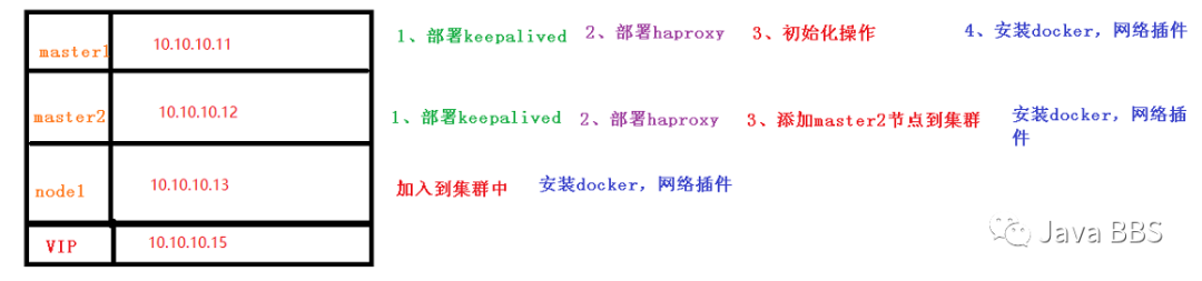 # 在master添加hosts[root@k8s-master1 ~]# cat >> /etc/hosts << EOF> 10.10.10.15 master.k8s.io k8s-vip> 10.10.10.11 master01.k8s.io k8s-master1> 10.10.10.12 master02.k8s.io k8s-master2> 10.10.10.13 node01.k8s.io k8s-node1> EOF[root@k8s-master2 ~]# cat >> /etc/hosts << EOF> 10.10.10.15 master.k8s.io k8s-vip> 10.10.10.11 master01.k8s.io k8s-master1> 10.10.10.12 master02.k8s.io k8s-master2> 10.10.10.13 node01.k8s.io k8s-node1> EOF