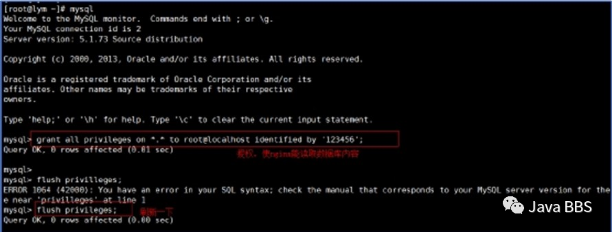 [root@server21 ~]# mysqladmin -uroot password 123456[root@server21 ~]# mysql -uroot -p123456
