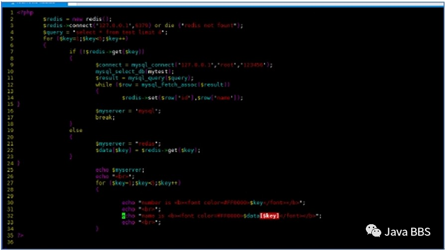 #再次刷新获取到Redis数据http://20.20.20.21/redis.phpredisnumber is 1name is a1number is 2name is a2number is 3name is a3number is 4name is a4number is 5name is a5#30秒之内查询数据都是从Redis里面获取数据,30秒之后,数据失效,回到初始页面;就需要从数据库里面再次获取数据,向Redis里面再插入一份。30秒提高了数据的一致性问题。Notice: Use of undefined constant mytest - assumed 'mytest' in /www/redis.php on line 17 resource(4) of type (mysql result) mysqlnumber is 1Notice: Undefined variable: data in /www/redis.php on line 41 name isnumber is 2Notice: Undefined variable: data in /www/redis.php on line 41 name isnumber is 3Notice: Undefined variable: data in /www/redis.php on line 41 name isnumber is 4Notice: Undefined variable: data in /www/redis.php on line 41 name isnumber is 5Notice: Undefined variable: data in /www/redis.php on line 41 name isredisnumber is 1name is a1number is 2name is a2number is 3name is a3number is 4name is a4number is 5name is a5