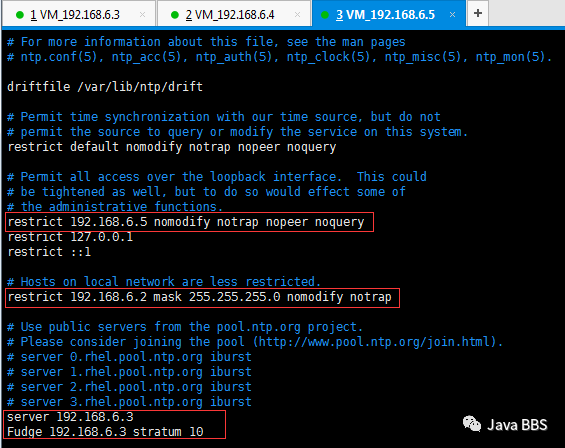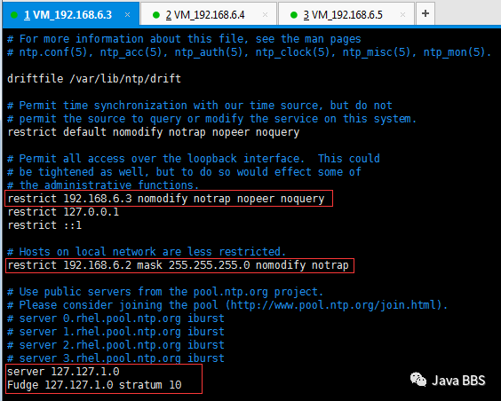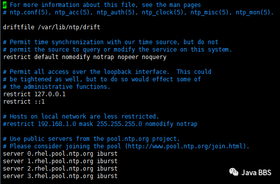 ntpd根据配置文件的参数决定是要为其他服务器提供时钟服务或者是从其他服务器同步时钟。所有的配置都在/etc/ntp.conf文件中。