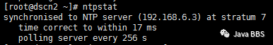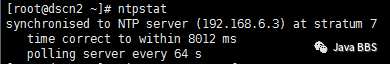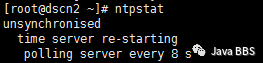 查看ntp状态时,可能会出现如下所示情况unsynchronised time server re-starting polling server every 8 s