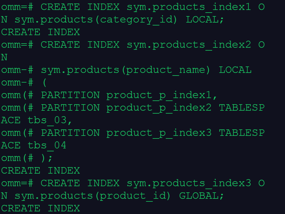 CREATE INDEX sym.products_index3 ON sym.products(product_id) ; --不带global声明