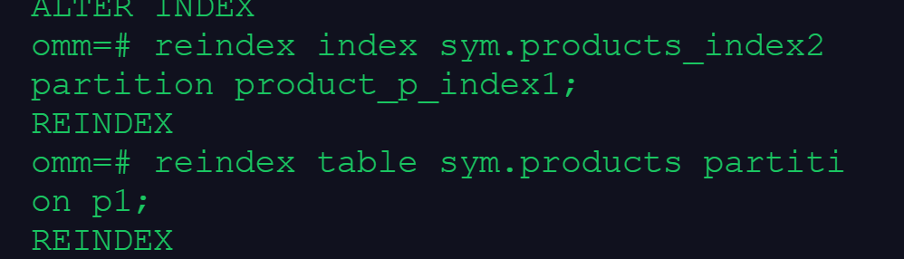 REINDEX INDEX sym.products_index2 partition product_p_index1;