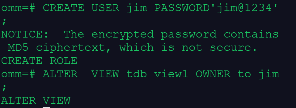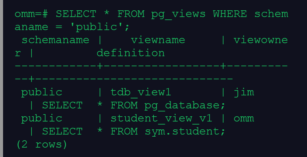 1.为系统表PG_DATABASE创建视图,重命名视图并修改owner为jim,