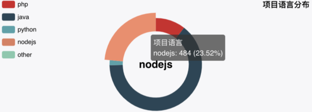 我们使用最多语言是Java,第二是Nodejs,占比超过20%。