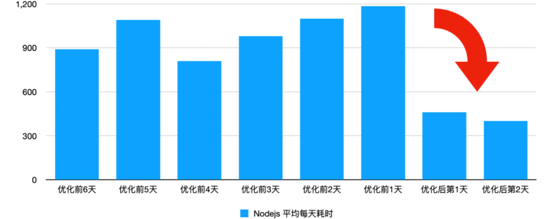 很多Nodejs项目发布的时间超过600s,部分项目甚至偶尔会超过1000s,这部分项目也是我们优化治理的“大客户”。头部大客户的数量下降了,速度起来了,就可以很好的反应策略的效果是否符合预期。