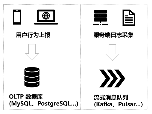 例如我们通常用MySQL、PostgreSQL、Oracle等OLTP(Online Transation Processing)数据库来存放各类的交易流水等数据,它们的优点是支持高并发、低延迟读写,且对事务提供了完整的支持。但是缺点是复杂查询(聚合、窗口、分组等)性能差,且缺少数据分析常用的各类函数,用作数据分析场景既低效,又不方便,还可能影响线上业务的稳定性。因此,我们需要OLAP(Online Analytical Processing)引擎构造的数据仓库(例如我们的ClickHouse 就可以被用作OLAP引擎),来满足海量数据的复杂查询能力。但它们通常并发读写的能力差,且事务支持不完备,因此也不建议直接用作线上的唯一数据存取系统。通常我们会使用CDC(Change Data Capture,变更数据捕获)工具,例如Debezium、Canal等,将OLTP数据库的流水实时同步到OLAP系统以供分析,这样可以充分发挥两套系统各自的优势。有些系统宣称自己同时满足OLAP和OLTP的特性,通常被称为HTAP(Hybrid Transactional/Analytical Processing)。但实际上对于很多HTAP系统而言,往往只是在内部将两套系统的CDC数据同步的过程对用户隐藏了,本质上还是异构的。此外,我们还会有一些流式数据,例如日志采集流、用户点击流等,它们以流的形式源源不断输入,且有很强的时效性,且顺序在传输过程中很容易错乱,导致分析起来异常困难。第三个因素是数据源繁杂,组件和格式众多,接入起来耗时长: