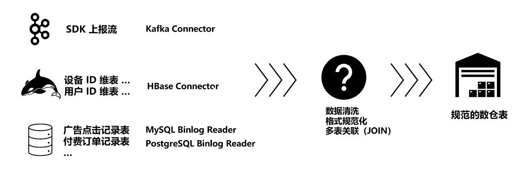 例如一个业务可能用Kafka来承接从SDK中上报的各类点击流数据,又使用HBase等KV系统来存储维表信息,还使用传统的MySQL、PostgreSQL数据库来保存精确的广告点击记录和付费订单记录等等。这些数据来自不同数据源,如何将它们规范化,并合理地关联在一起,最终写入到数仓中,也是一个难点和重点。上述痛点和难点如果不加解决,会严重拖慢分析师的效率:轻则影响拓客和营销的效果,巨额的投入得不到转化;重则会因为风控系统失灵,对业务造成毁灭性打击。因此我们必须通过系统化的体系构建,选择合适的工具组件,逐一解决上述提到的效率困境。