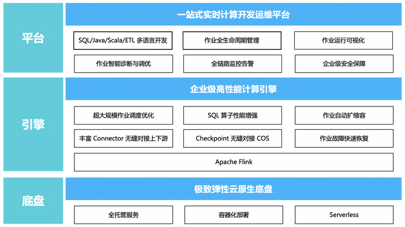 由于开源版Flink的应用开发、调优、监控、运维较为繁琐,腾讯云为了解决这些痛点,推出了流计算Oceanus产品。它是基于Apache Flink的实时化分析利器,具备一站开发、无缝连接、亚秒延时、低廉成本、安全稳定等特点,致力于打造企业级实时大数据分析平台。它提供了丰富的运维开发、监控告警、异常检测能力,融合了技术团队多年的Flink开发和运维经验,并持续为Flink内核与生态贡献力量。
