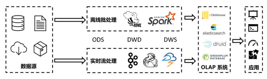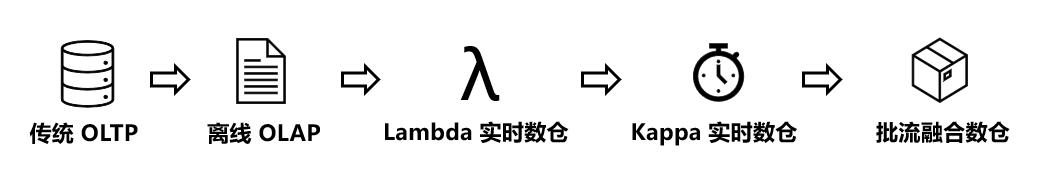 当数据量总体较小时,传统的OLTP数据库已经可以初步满足分析需求。但是随着数据量的剧增,以及分析逻辑的复杂化,OLTP数据库已经无法满足需求时,业界逐步发展出了离线OLAP引擎和离线数仓等应用技术。后来随着大家对实时性的关注,在离线数仓的基础上又演进出了Lambda实时数仓。为了解决Lambda数仓重复开发和运维的繁杂等缺陷,Kappa数仓也渐渐得到了采纳。为了弥补Kappa数仓的缺点,很多公司又设计了批流融合的数据格式,打造了融合的一体化数仓结构。例如Iceberg(https://iceberg.apache.org/)、Hudi(https://hudi.apache.org/) 为批处理的文件格式增加了流式读写支持;而Pulsar(https://pulsar.apache.org/)、Pravega(http://pravega.io/)则为数据流增加了批处理所需的长期持久化存储特性。