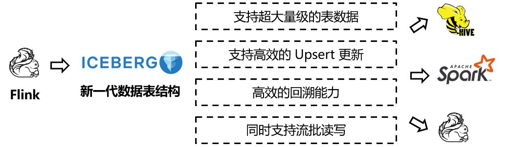 相比Lambda架构而言,Kappa架构将流和批融为一体,不再分为两条数据处理链路,数据统一经过流式数据管道传递,清晰简明,可以大幅降低开发和运维成本。但是它的缺点也很明显:由于数据传输都需要经过消息队列等数据管道,为了保证作业崩溃或逻辑修改后可以随时追溯历史数据,消息需要有很长的保存期。此外,由于各层之间没有可落盘的文件存储,难以直接分析中间层的数据,通常需要启动一个单独的作业来导出数据才能分析,灵活度欠佳。为了解决Kappa架构的缺点,我们引入新一代的表结构:Apache Iceberg(https://iceberg.apache.org/),它的优点如下: